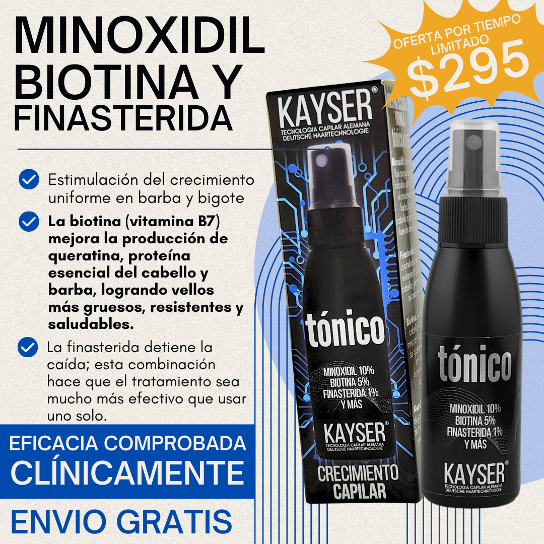 Con más de 250,000 botellas vendidas de nuestro tónico Kayser, hemos perfeccionado nuestra fórmula para maximizar el crecimiento capilar. Ahora, con finasterida 1%, potenciamos aún más sus efectos, brindando una solución innovadora para fortalecer y revitalizar tu imagen.